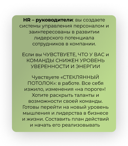По окончании программы и во время нее мне стало гораздо легче обсуждать с коллегами все вопросы. Я чувствую поддержку, доверие. Несколько сотрудников среднего звена лично поблагодарили меня за эту программу, говорили о ее пользе. Я знаю, что многие полезные знания и практики ребята перенесли в свои семьи.
